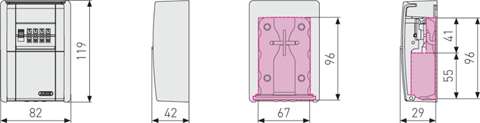 Sleutelbox voor binnen en buiten onder afdak. Voornamelijk gebruikt door thuisverpleegkundigen en dienstenchequebedrijven, maar ook voor ouderen en als reserve sleutelbox.