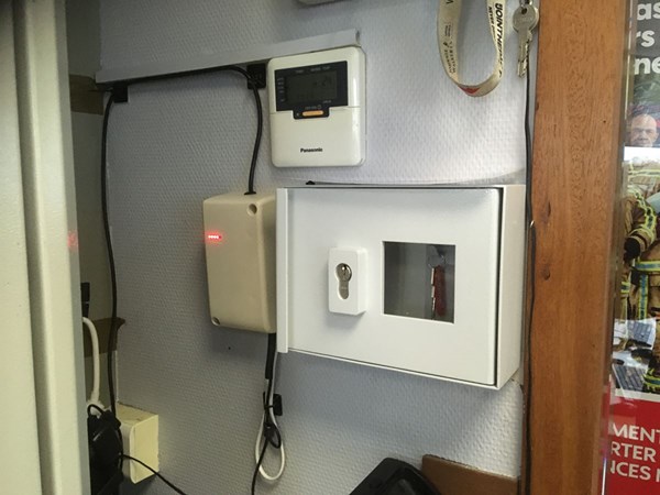 Het is voorzien van een elektrisch slot (12/24 volt) dat is verbonden met een SIM-module.